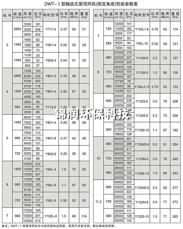 6、DWT-Ⅰ型軸流式屋頂風(fēng)機(jī)性能參數(shù)
